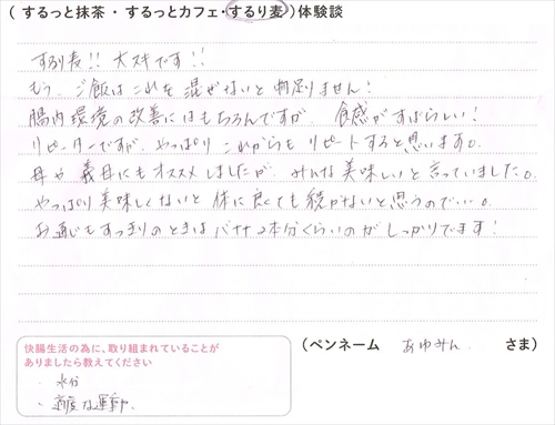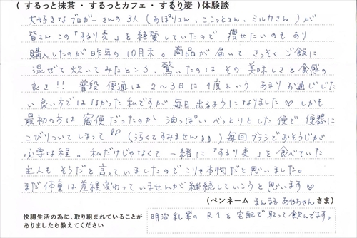 「便秘の人にしかわからない大きな喜びです」((のいこ様 51歳 女性)