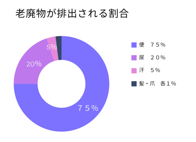 便からの排出が75%で圧倒的に多く、つまり、 老廃物のほとんどは便で排出されるということなんですね。