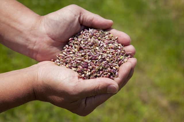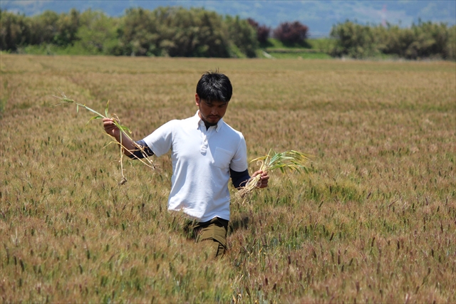 麦にとっては、冬にしっかり冷えて、夏にしっかり暑くなるのが理想的だそう。去年のように早くから暑くなりすぎると、どうしても生育に負担がかかってしまうそうですが、今年は気候が安定していて、穂の中の粒もしっかりふくらんでいるとのこと。