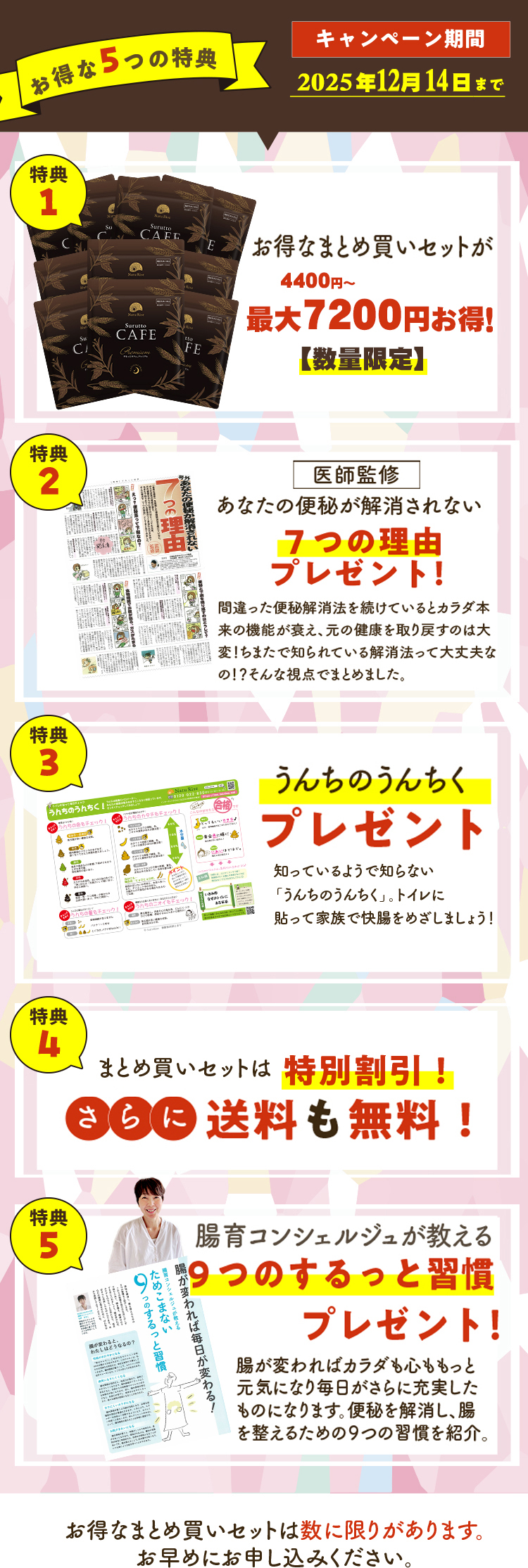 ご家族やお友達と一緒に続けたい、この機会にしっかりお通じ改善したい方のために もっとお得なセットもご用意しました。